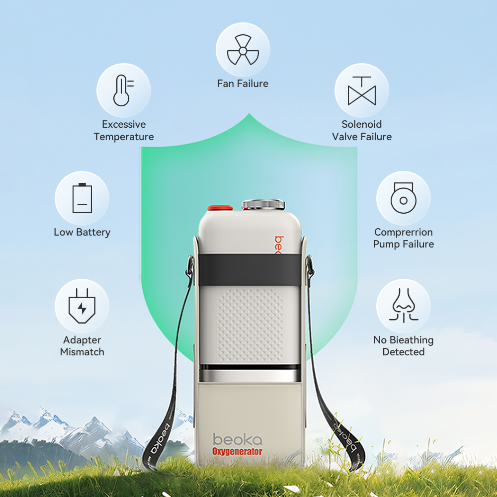 Equipped with dual Tianjin Lishen A-grade 3C lithium batteries which trusted by top-tier electric sports cars. Beoka Mini Oxygen Generator offers up to 180 minutes of runtime. Quick-release design allows fast battery swaps, giving you freedom and flexibility on the go.